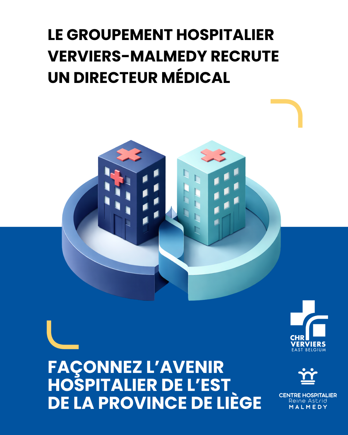 Le Groupement Hospitalier Verviers–Malmedy poursuit son développement et renforce sa gouvernance médicale. Dans ce contexte, il ouvre le recrutement d’un Directeur médical, un rôle clé au service de la qualité des soins, de la coordination médicale et de la stratégie institutionnelle.